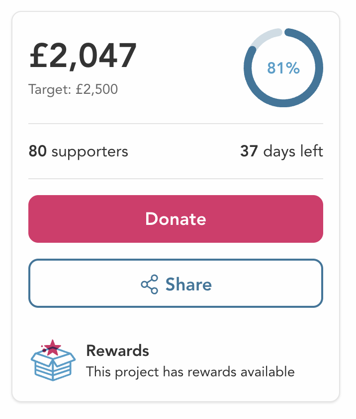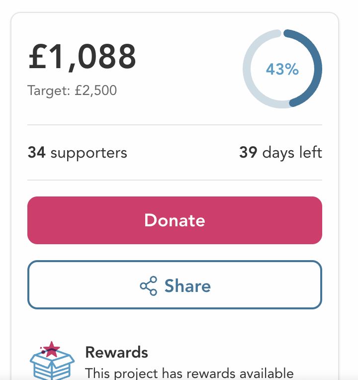This is really amazing and heart-warming. We’ve already exceeded £2000 - which is 80% of our total, and that is just since Sunday. Thank you all so much.