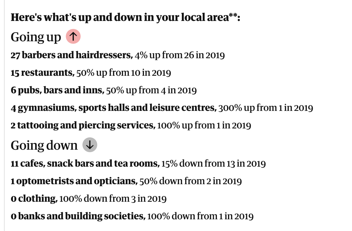 Interesting tool that has been put out by The Guardian looking at how our high streets (across the country) have been changing, but also with a way to drill down to your local area.