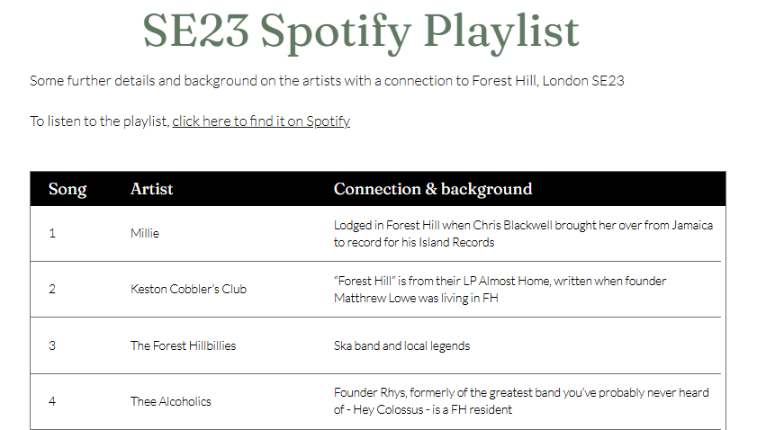 Here’s the list of artists in the playlist with Forest Hill connections: